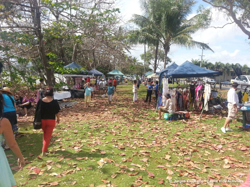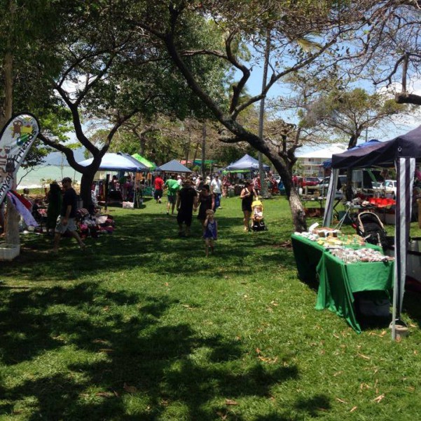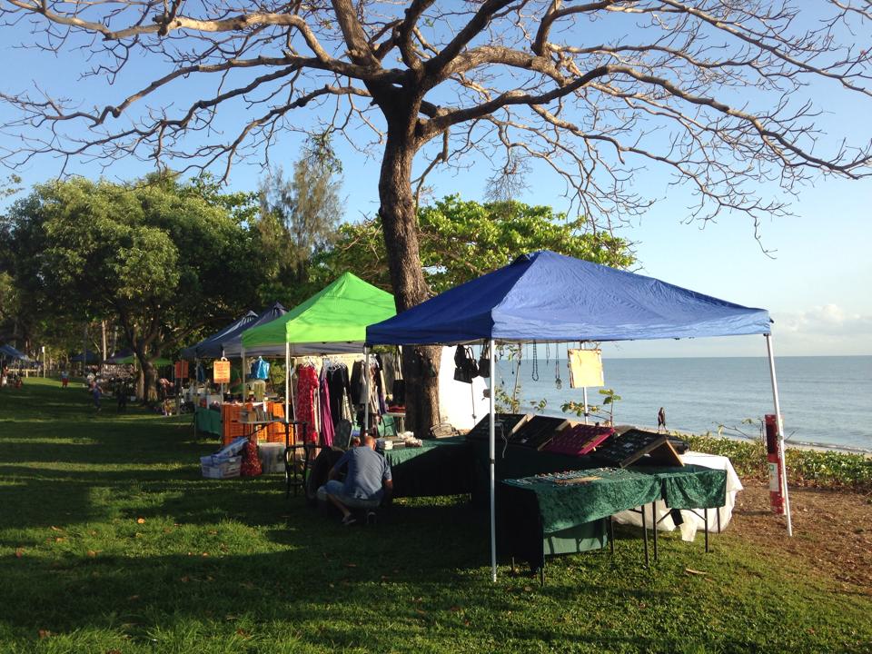 Stroll amongst the stalls shaded by the beautiful beach front trees and palms.